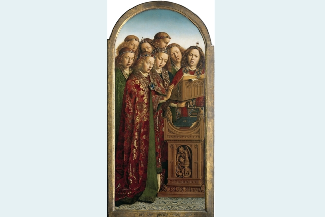 Zingende engelen; altaarstuk in de Sint-Baafskathedraal in Gent door Jan Van Eyck, circa 1430-32