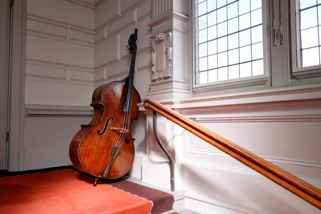 ‘Ik speel op een Engelse bas uit 1810 van John F. Lott, uit de collectie van de Foundation Concertgebouworkest. Dit is een snel en gevoelig instrument: dat betekent dat je al direct een klank krijgt als je iets kleins met je stok of vingers doet. Ook zachte en snelle dingen kun je er duidelijk op spelen, er is geen weerstand op de linkerhand. Met andere bassen moet je harder werken om er geluid uit te krijgen. Het voelt een beetje alsof ik valsspeel met mijn bas. Hij is als een Tesla: je zet je voet maar licht op het pedaal en hij schiet al weg.