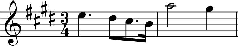 Figuur 1. Een belangrijk leidmotief is Wotans speer: een strenge, dalende toonladder