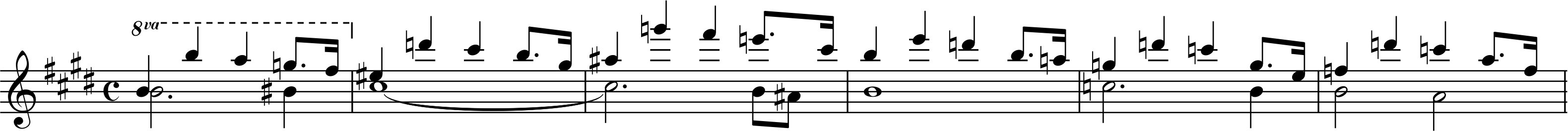 Ook het motief van de slapende Brünnhilde (Figuur 4) waarmee de scène wordt afgerond, is afgeleid van de speer. Het klinkt eerst nog onrustig en wanhopig. Maar dan volgt de omslag, en die is stralend. Wotan kan zijn liefde voor Brünnhilde niet langer onderdrukken, beseft dat ze deel van hem is en stemt in met haar wens. Hij roept Loge – de god van het vuur, die ooit samen met Wotan de ring stal van Alberich – aan, chromatische loopjes verklanken het vuur. Een schitterende combinatie van leidmotieven klinkt in de slotmonoloog van Wotan: zijn afscheidsgroet, het noodlot, het vuur, Siegfried, het slaapmotief (Figuur 5).